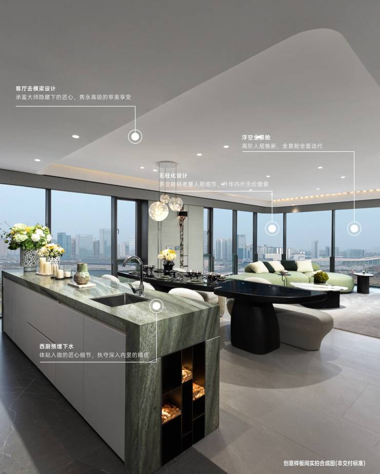【迭代产品】迭创双全景舱 盛放极致奢感三⼤标准 标⽴时代奢宅视野性/ 无视野,不端厅极佳地标观距:距396地标约1700米,489地标约2300米端厅视距最小约62米,最大约92米兼顾奢居视野与尊崇感