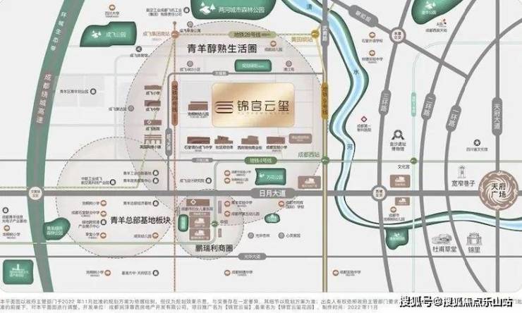 锦官云玺位于成都市西3.5环,青羊区文耀路和成都实验小学(明道分校)之间,这里属于青羊新城成飞板块,周边有龙湖西府琅悦、新力曦悦等楼盘。