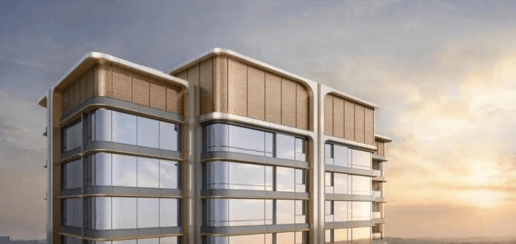 材质奢选:甄选全球超15种珍稀石材(如莫奈绿曲面奢石、白玉冰裂纹石材、意大利蓝白奢石、黄虎眼石、绿野仙踪大理石等)铺陈65米超长门廊及归家路径;立面铝板统一采用“范戴克棕”,冠顶饰以水纹铝板,尽显奢华。