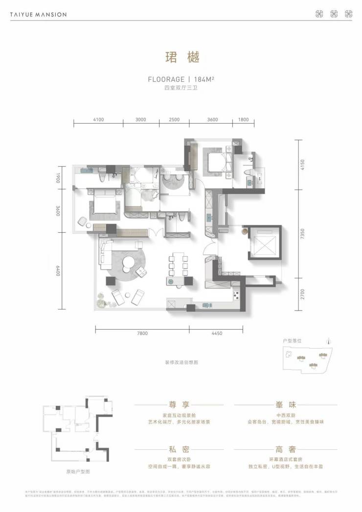 产品面积:173-184-220㎡天际大平层,240-550顶奢跃层,公建化立面:全铝板➕玻璃幕墙