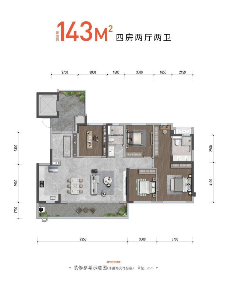 精装交付(含地暖+新风),品牌选用TOTO、西门子等一线。