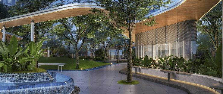 在建筑外型上,对标新加坡滨海湾,定位现代简约,简洁流线的建筑元素,搭配外立面玻璃封窗,让整个项目与怡心湖和谐共生——不仅仅只是单纯的钢筋混凝土堆砌,视觉即高端、时尚有温度,