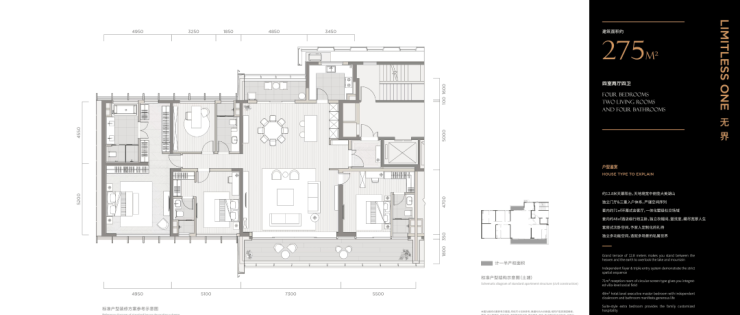 276㎡户型配置9米转角阳台,270°环幕视野