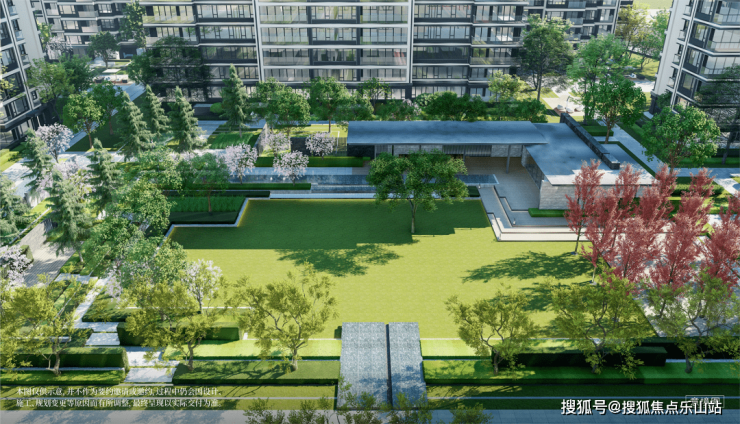 翡玥蘭庭总占地约54亩,容积率低至2.0,从总平图来看看,11栋(12~17F)的住宅呈点阵式围合布局。所有楼栋均为南北朝向,南北最大楼间距超70米、东西最大楼间距超80米,在堪称奢阔的楼间距下围出了一个大中庭。