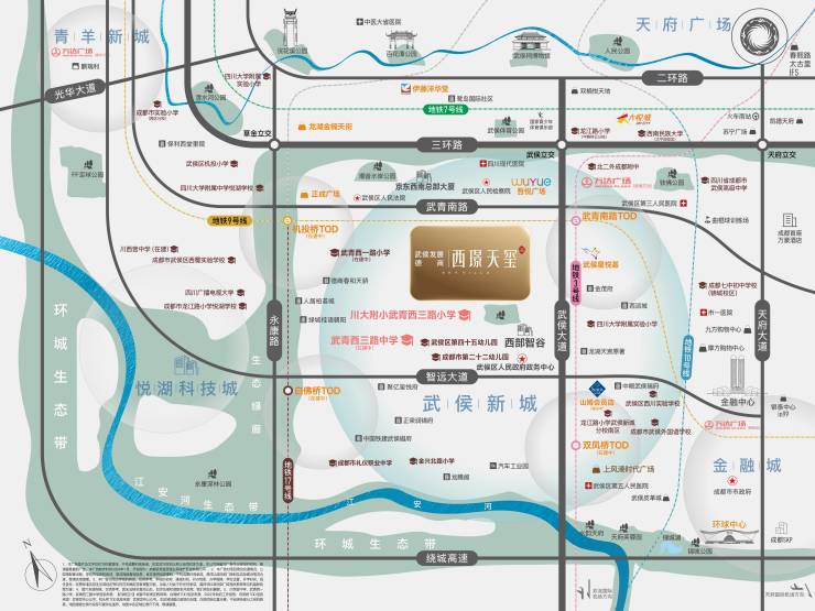 【区域】主城黄金发展区,“壕宅第三级”武侯新城☑3.5环黄金C位,轴线核心发展区☑壕宅第三极武侯新城,主城高热度区域☑武侯区政务中心,全赋能产业高地☑四大TOD聚集,一流国际化新城规划