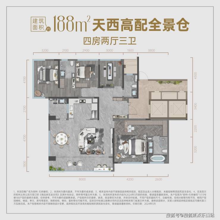 面积段:120-188㎡四房改善,全精装交付(装标2999元/㎡)。