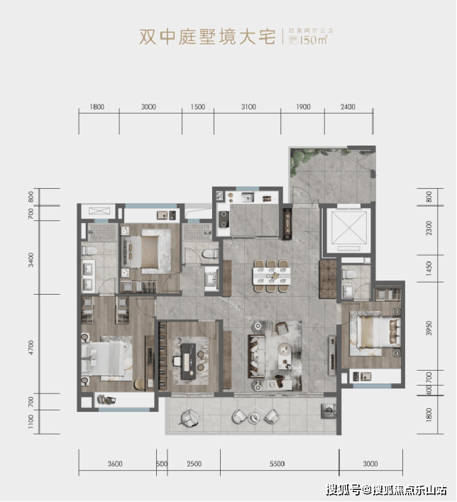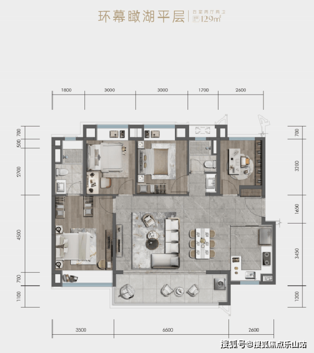 建面126-143㎡:宽屏板式设计,套房主卧,低公摊高得房率。