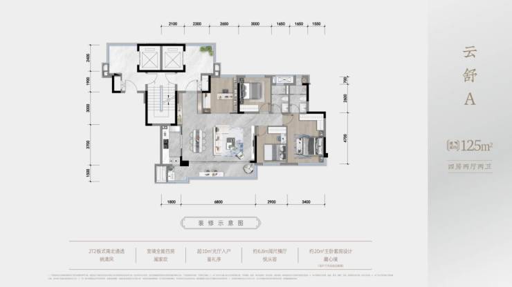 户型图2 梯 2 户 电梯入户 270 度光厅建面约125-143㎡套四