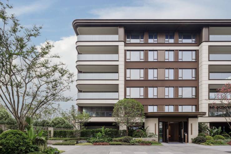 【外立面】现代雅致美学立面 立面均采用大面积定制玻璃,结合金属板、奢石,塑造多层次的灵动弧线造型,将时间的沉淀和韵味融入建筑整体。与白鹭湾湿地公园融为一体,温润儒雅久经传承。