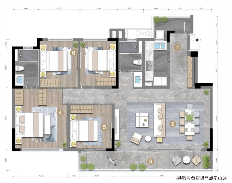 除了128㎡的小高层是三室外,其他平层户型都是四室。