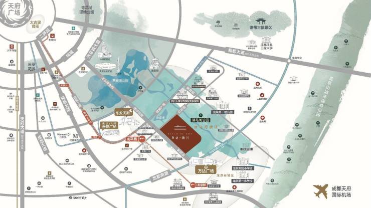 2. 大型商圈:核心商圈近在咫尺,步行900米可抵达万达广场(成都龙泉驿店),10分钟车程内可直达吾悦广场(成都龙泉驿店)、龙湖东安天街三大商业综合体,总体量达30万方,涵盖品牌零售、特色餐饮、休闲娱乐等多元业态,全面满足高端消费及社交需求。