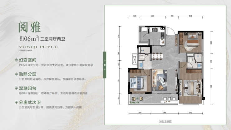 •产品面积:建面约106、110㎡/套三,建面约125、136㎡/套四 •交房时间:2027年