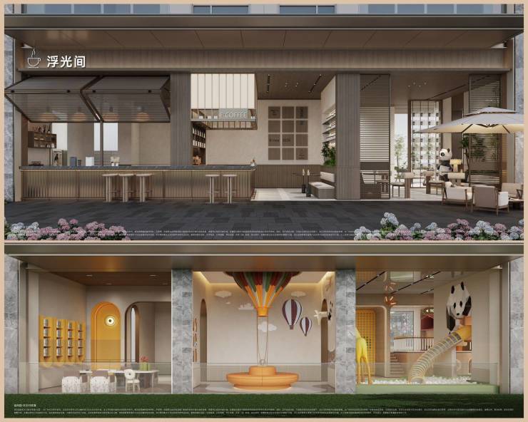 下沉式湖光会客厅+8大主题架空层:宝格丽安缦美学,涵盖轻咖、儿童乐园等社交空间。