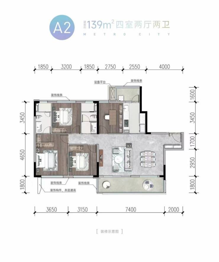 💗139㎡户型:套四