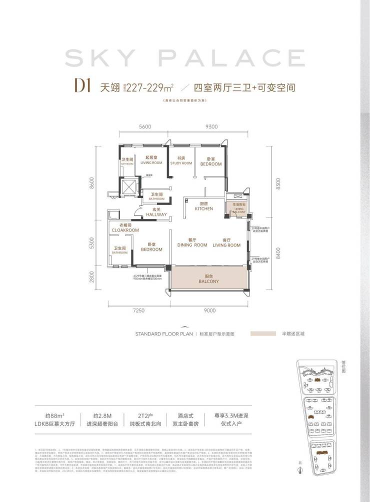 D1 – 天翊(建面约227-229㎡ 四室两厅三卫+可变空间)🌃2T2户纯板式南北向,尽享阳光与清风🌃约88㎡LDKB大方厅,墅级社交享受🌃酒店式双主卧套房,更懂家庭关系场🌃约2.8M进深阳台,恣意打造全龄志趣生活