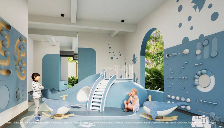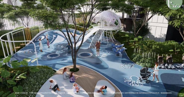 60 米宽海边绿岛中庭景色宜人|海洋世界儿童乐园,给孩子欢乐天地|下沉式林下会客厅,静谧舒适。