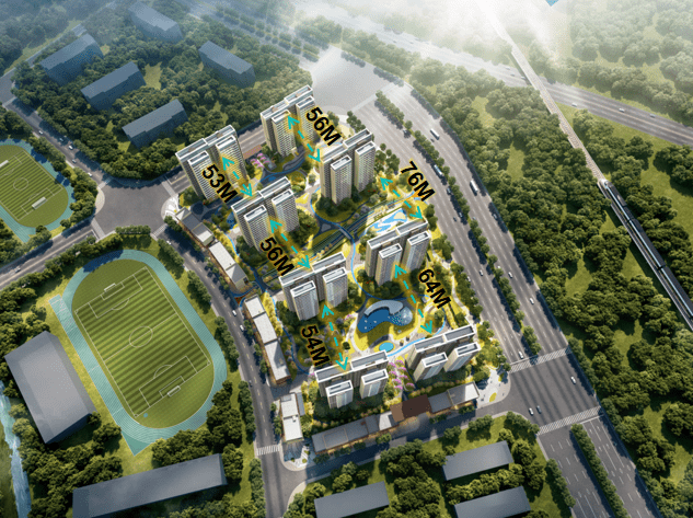 🔹76亩大盘,容积率2.5,绿化率约42%,超宽楼间距53-76米