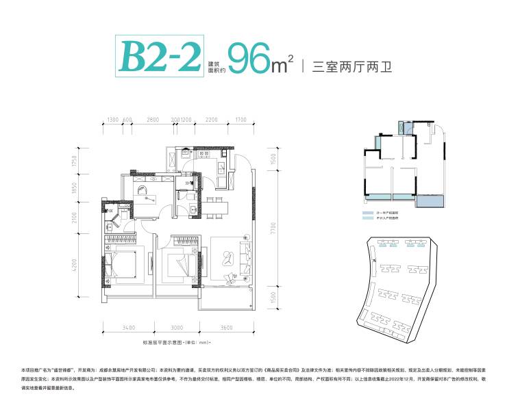 B2-2—建面约96㎡三室两厅两卫 有为青年家