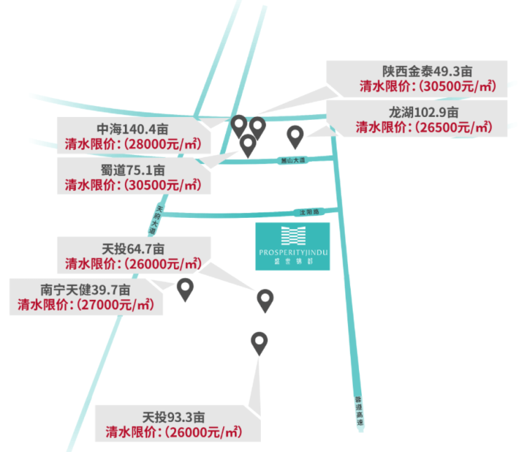 2020年开始,全新规划下的天府前湾在土地市场中,保利、中海、万科、龙湖、奥园、德商、绿城等多家品牌房企集中入驻。2021年项目拿地清水限价20000元/㎡,仅过了半年时间,中海和保利就以25000元/㎡限价竞得周边地块,而随着法务区的不断呈现,未来一定房价的一个价值洼地,现在正是入选“天府前湾”的较好时机