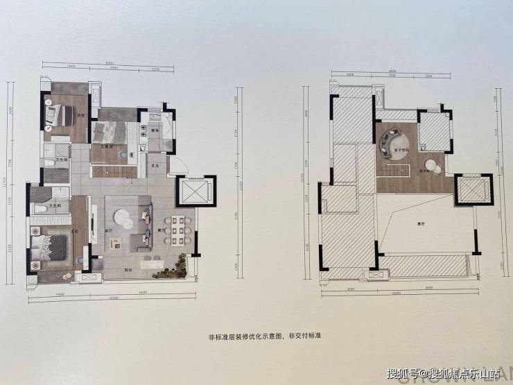 首层+夹层的跃层设计,顶层挑高空间,约4.8m层高,接近“墅居”的生活体验。