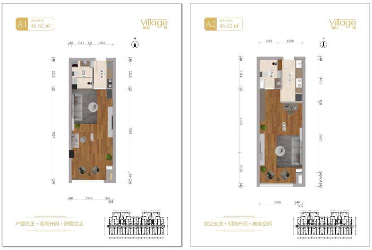 【户型图】A1、A2 大通厅一室一厅(有无玄关区别)
