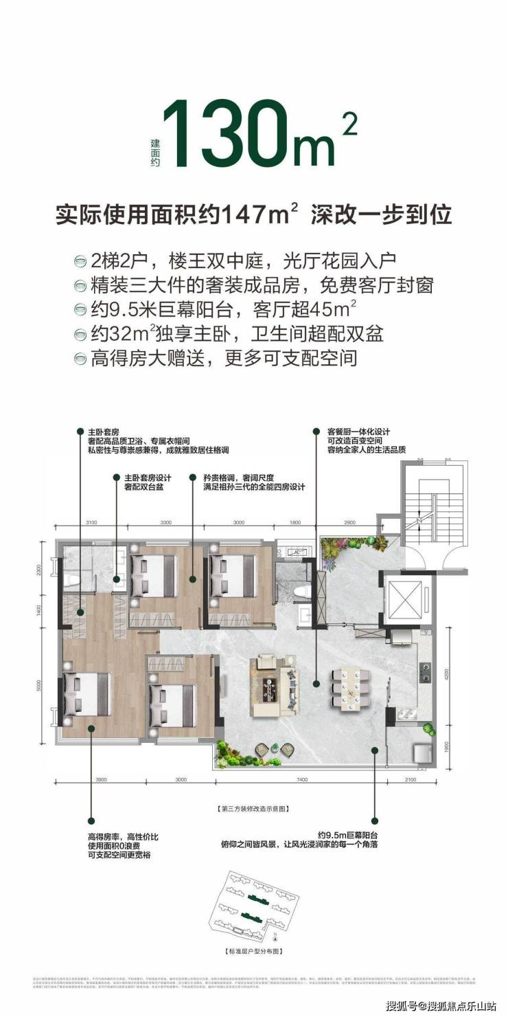 130㎡:四房改善型,双阳台,空间利用率高。