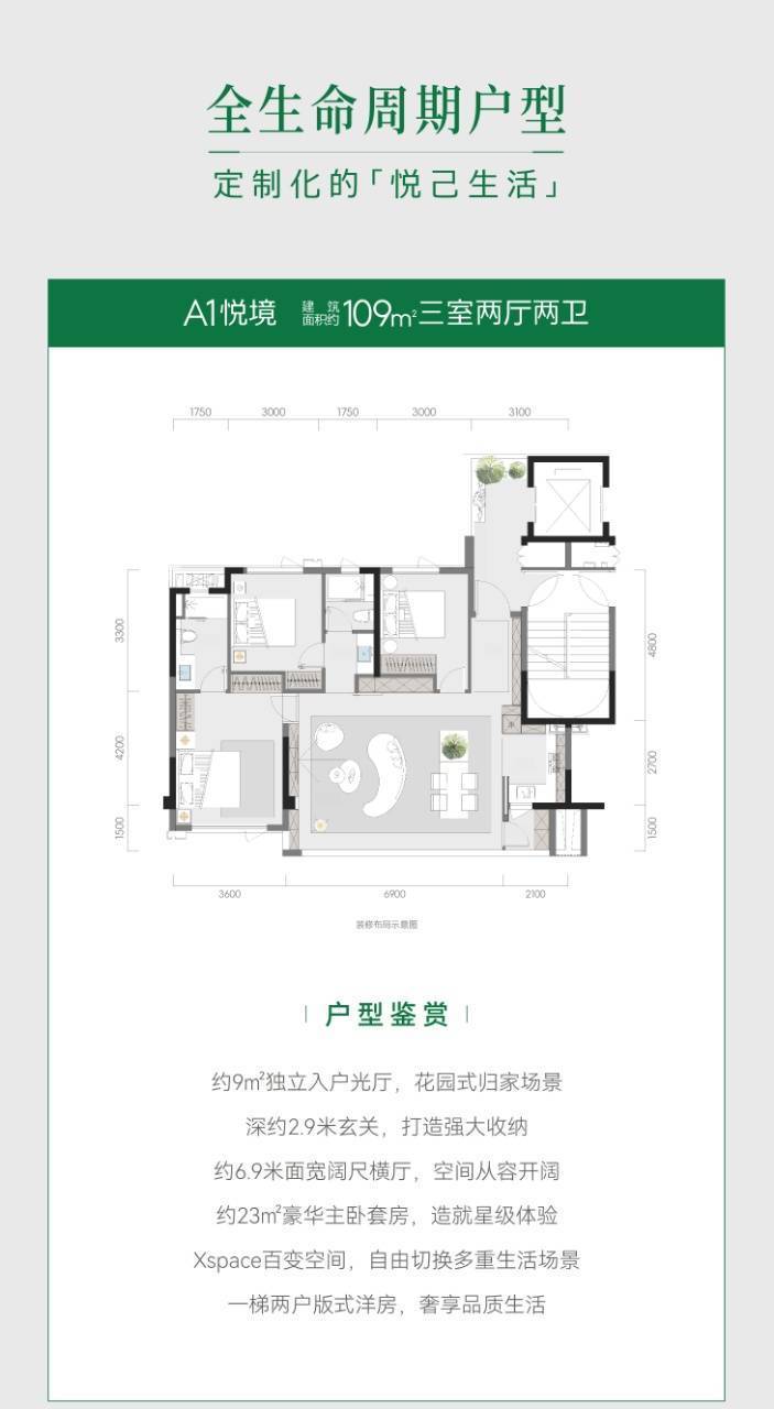 过围合式布局与点式布局的结合,为项目在园林打造上留出了更开阔的空间,营造了草坪剧场、全龄活动、健身跑道、康养休闲、观景平台五大生活场景,形成了能够满足业主运动、社交、亲子、休闲等多功能的空间,且空间尺度也相当阔绰。