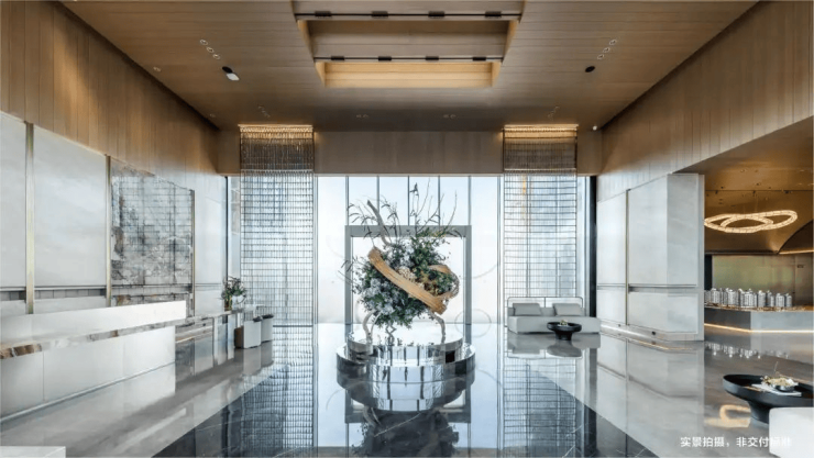1:1 还原艾迪逊酒店前台,室内挑高约6m豪宅级归家礼序,让仪式感与尊崇感铺满归家之路;