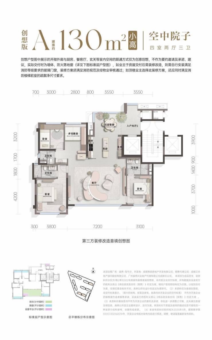 130㎡·四房两厅三卫·空中院子▪️建面约:130㎡ ▪️派对私屿院落潮派花园入户,独立归家私厅,餐厨花园▪️新贵双厨社交聚厅约45㎡新贵社交聚厅,约7.2m宽境观景面▪️新西贵主卧套房主卧套房式设计,读懂新西贵的生活质感所享