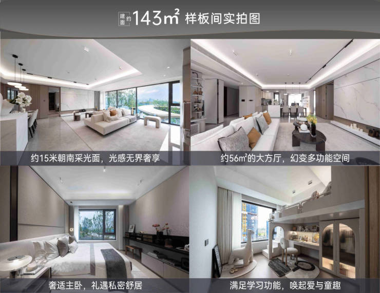 户型亮点:约99%超高得房率,143㎡的面积,悦享180㎡的尺度,约15米朝南采光面,光感无界奢享;约56㎡的大方厅,幻变多功能空间,舒展丰富场景