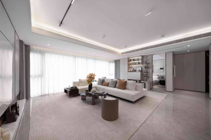 入户门厅,地面定制专属地砖,打造“银杏”归家浪漫。墙体奢品真石材,将原石打磨出曲面弧度。建筑的曲线艺术蔓延至入户门楣,让每次归家都充满仪式。地面、墙体、玻璃大门拼缝线严格剧中对齐,实现建筑对称美学