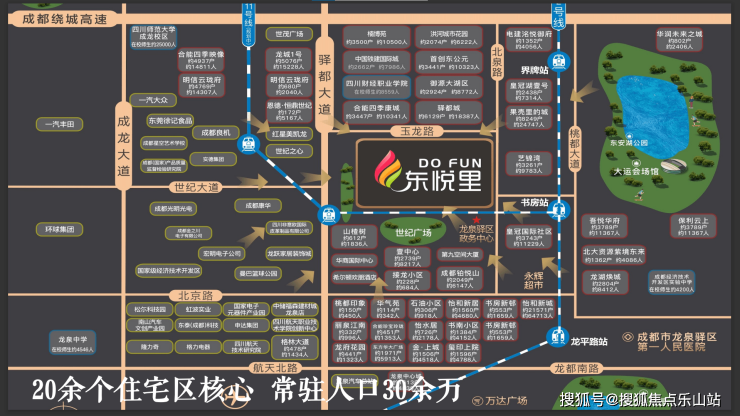 5KM内有20多个入住5年以上成熟社区;2)14所高校,23万师生;3)东安生态旅游圈,吸附来自世界各地的游客(约5200亩东安湖+东安阁+大剧院+艺术中心等,未来城东文化旅游网红打卡地虹吸全城人潮);4)CAZ高端居住区(包含约120多个大型社区10个百亩大盘约34万高净值客户群体);
