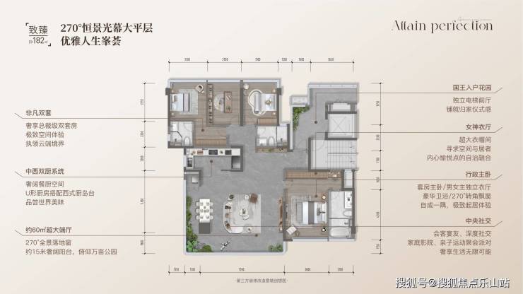 143㎡户型得房率99%,182㎡实现270°环幕视野