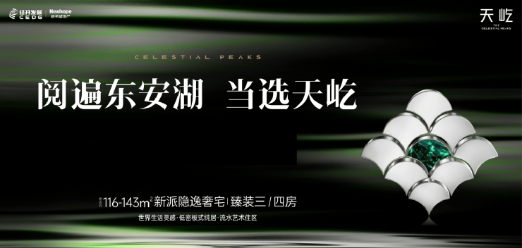 新希望联合经开发展集团打造——天屹坐拥东安湖CAZ首熟区,以2.0超低容积率呈现纯洋房住区,直线距离地铁2号线书房站800米,主推116-143㎡精装产品,打造"内外双园+宝格丽会所"的湖居4.0时代标杆。