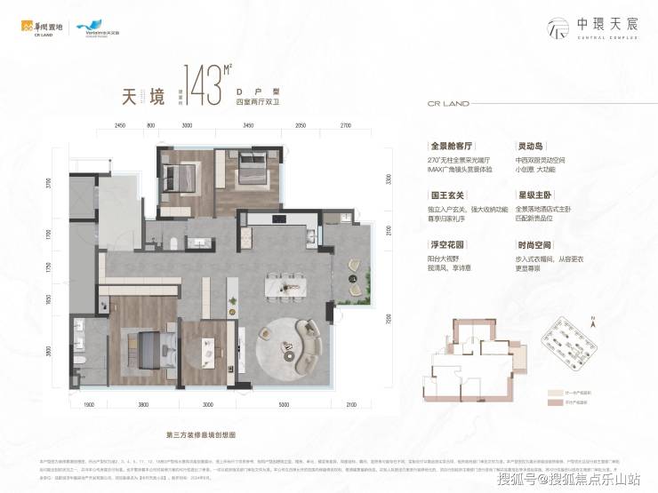 建面约110-143㎡三至四房:全景舱设计,高得房率,主打功能性与舒适性平衡;