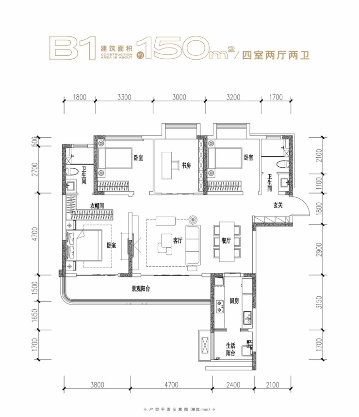 约4.2米宽境尺度客厅,贯连约7.8米南向景观阳台