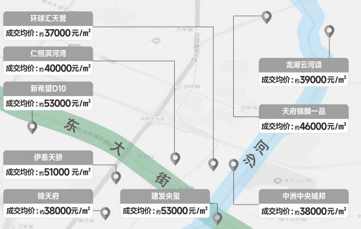 万象城东,位于沙河豪宅带与东大街豪宅带交汇之处,继承两大豪宅带的土地禀赋,顶配资源环伺,一线品牌房竞相争藏,2025年成华区成交地块 13宗,2万左右单价地块成交7块,均在区域周边,其中最高溢价51%,为全城最高。目前华润,绿城入市项目均价3.5 万+, 华宸府开盘价达 3.6-4.1 万,持续热销,高端属性大势已成