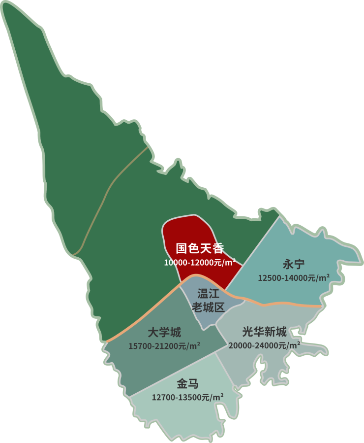 主城绝无仅有房价,国色天乡板块置业热点国色天乡,与其他区域同享城市繁华配套,却独拥绝佳生态环境和健康生态生活方式。而目前清水房价仅在10000-12000元/平米,处于主城区少有的低位。 低位的销售价格、主城少有的生态环境、快速便捷交通、品牌房企的密集介入、低密度产品规划,国色天乡板块即将成为主城区新的房地产开发热点。