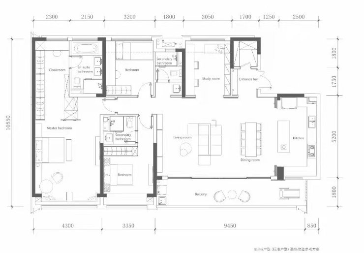 建面175㎡四房:南向双阳台+中西双厨,主卧套房配备独立衣帽间。