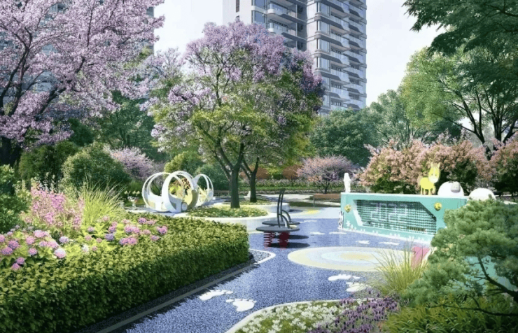 六大意趣空间、五大园区定制主题、儿童童梦空间等生活区串联其中,共同组成推窗可见的公园山水视角、与自然对话的生活体验空间。