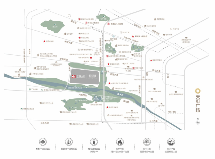 项目十大核心价值点:1、【品牌】兴城人居,拿地第一,打造网红项目数个,中国房地产综合实力百强,综合实力成都国企首位,2020销售额破200亿。2、【区位】蜀都新城中央生活区与菁蓉湖中央商务区双核驱动,发展潜力巨大!生态、商务高地,价格洼地!3、【产城】毗邻国际化创新研发中心,全球智慧型产业云集,高端人才居住配套区、TOD综合开发区。同时菁蓉湖中央商务区还是成都市重点打造的成都电子信息产业功能区的未来商务商业中心,区域内规划有喜来登国际酒店、粤港澳国际会展中心,滨湖商业街,爱思瑟国际学校等核心优质配套,整体建成后将为周边3-5万多名高精尖商务人群及居民提供社交、休闲和消费的商务商业中心。4、【生态】清水河艺术公园近在咫尺,一河一湖三公园,亲近自然,临河而居。5、【稀缺】临河临公园稀缺板块,改善居住首选,周边待开发土地多,且均以改善项目为主,高端居住群建成后,未来升值空间大。6、【项目】107亩终极改善大盘,1.5超低容积率,绿地率高达50%,7-12层真洋房+叠拼配置,超阔视野,举目皆景。7、【景观】园林景观采用一轴、四园、两巷+五进入户空间体系设计,给予业主尊贵立体归家仪式感。8、【现房】清水现房交付,满足不同家庭个性化生活习惯的装修需求。9、【户型】户型187平起,空间尺度更奢适,缔造区域内纯改善标杆。10、【圈层】高端人才项目、居住圈层更优质,与精英人士共享城市未来。