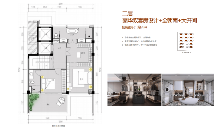 花园面积约57㎡(入户花园约17㎡+屋顶花园约40㎡)