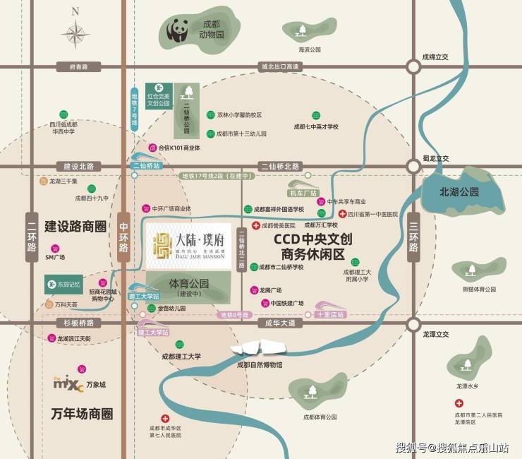 立体交通——双地铁交汇处 全城无缝衔接【四轨】与地铁7/8号线交汇点“理工大学站”直线距离不到500米,板块内还有17号线在建中、32号线规划中【三横】成华大道、蜀龙路、府青路【三纵】中环路、二环路、三环路