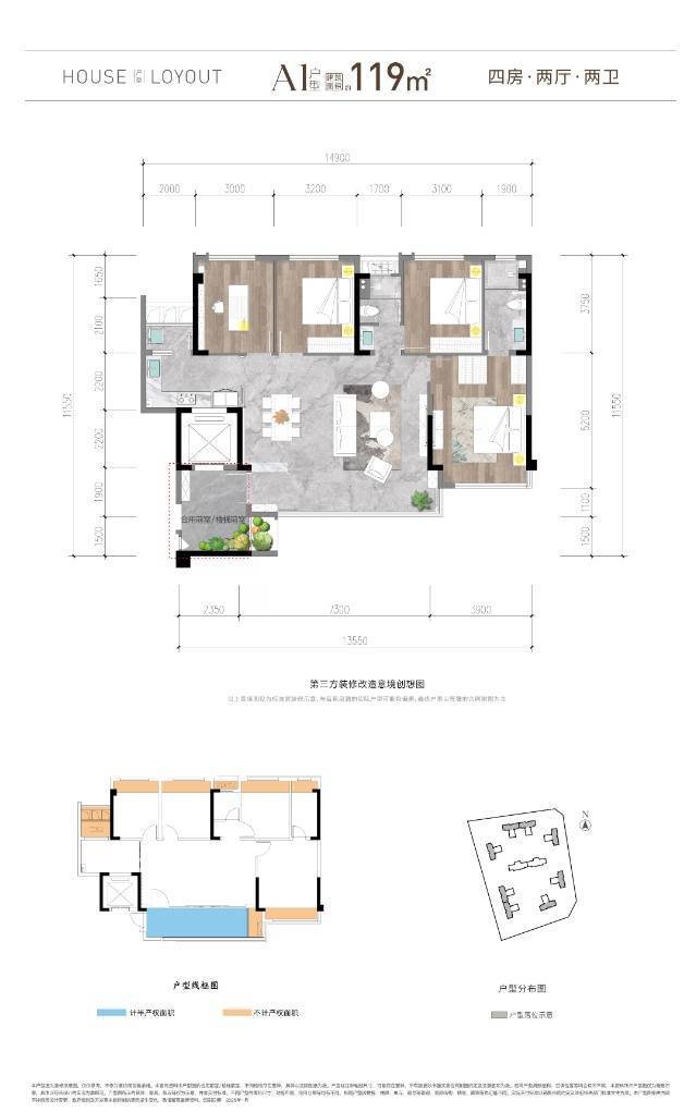 119㎡:四房设计,功能性强,总价220-230万