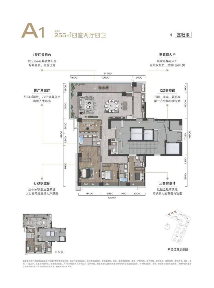 主力建面约129-513㎡精装大平层,3.15米层高奢阔尺度