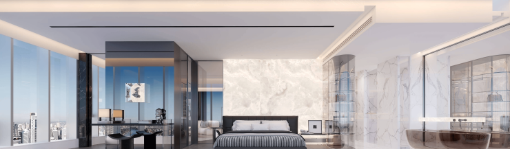 卖点七:盈嘉配备奢华精装,是顶级轻奢服务式公寓。中央空调、新风、地暖全带,洁具杜拉维特,五金汉斯格雅等,盈嘉专为高管、海归等金字塔人群提供至尊服务。