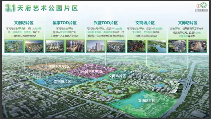 天府艺术公园片区:打造代表四川开放新高度的“一带一路”对外交往中心,规划面积12.6k㎡,以金牛国宾馆和天府艺术公园为核心建设扬天府神韵、放金牛异彩的”蜀都之窗“。