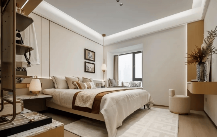 比如建面约88㎡户型,主卧面积约14㎡,次卧开间也有约3米;建面约118㎡户型三个卧室均设计有飘窗,且三间卧室都不小,主卧的进深达到了约4.8米,可设计一个独立的步入式衣帽间,两个次卧的开间最小也有约3米,进深都做到了约3.9米,可以作为标准的卧室使用。