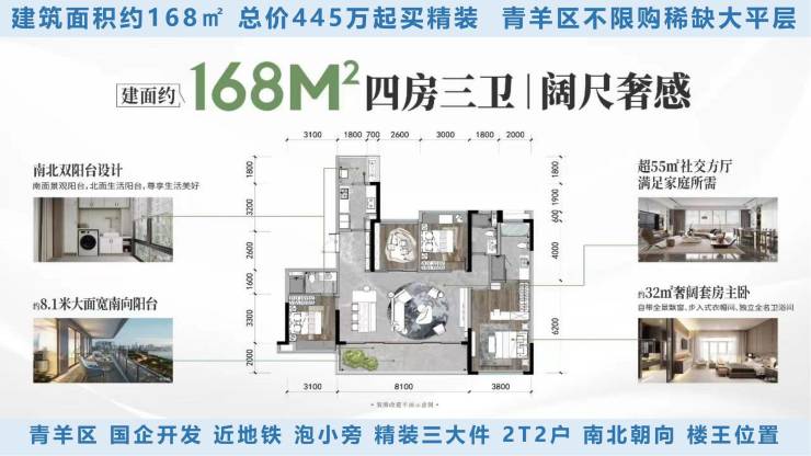 🌟青羊新城—地铁4号线非遗站C口约800米,非遗绕城口1.3km(3分钟)🌟区位—“成都十四五规划“都市圈建设—七大城市副中心之青羊区唯一“青羊新城”—青羊首个公园示范区.K15名校环绕.新城市界面即将呈现🌟“人文青羊.航空新城”:千年人文底蕴+航空产业+科创中心+高知圈层居住区