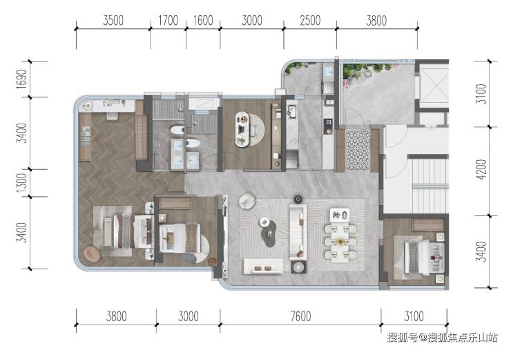 交付标准3990元/㎡全精装交付,全景落地窗